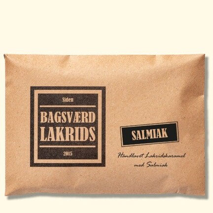 Håndlavet dansk salmiak-lakrids fra Bagsværd Lakrids. Deres Salmiak Lakrids er rørt med ekstra salmiak i gryden. Efter kogning hældes lakridsen i forme, hvor den hærder natten over, inden den håndskæres og pakkes. Lakridsen udskæres i mundrette stykker.