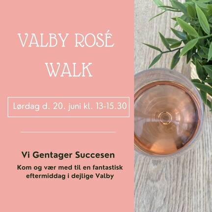 Vi gentager den store succes fra sidste år! Valby Rosé Walk er for dig, der elsker arrangementer, hvor du både kan være sammen med gode venner, kollegaer og kæresten - og samtidig få serveret kølig rosé. Ruten er på ca. 5 km - så alle kan være med.