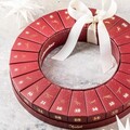 Bag hver låge er der 2 stk. fyldte chokolader med enten flødekaramel, marcipan, nougat og lakrids etc. Julekalenderen er lavet som en fin krans, der er så smuk, at den også kan indgå som en del af julepynten derhjemme.