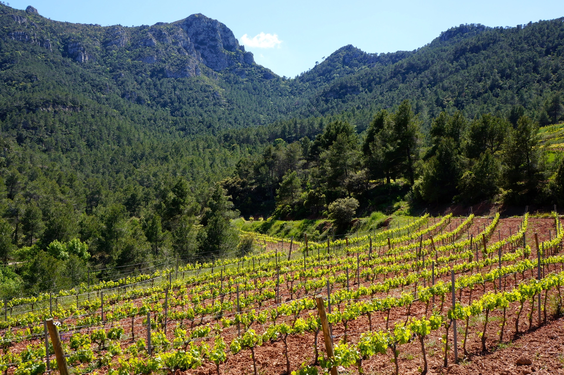 Vinmarkerne ligger på stejle skråninger og terrasser med en tæt beplantning, hvilket besværliggør tilgangen til vinmarkerne. Granache er den primære drue hos Vinyes Domènech.